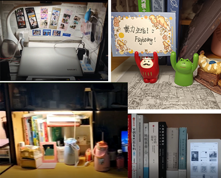 当然,桌子上也不乏一些小装饰,增添寝室乐趣的同时,也暗许同学们的努力学习、快乐生活。