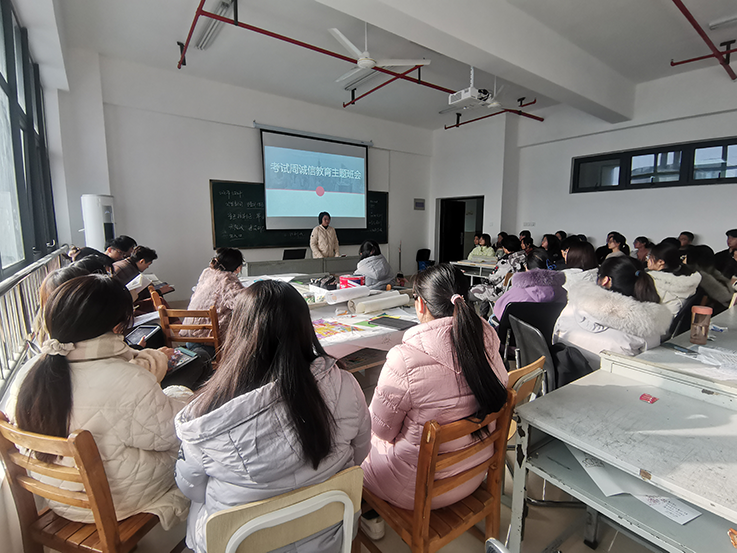 各班级辅导员召开诚信考试教育主题班会,叮嘱同学们认真复习、诚信考试,申明考试违纪严重后果。学生会向全院学子发出《建筑与规划学院诚信考试倡议书》,阐明严格遵守考试的重要性和诚信为本的为人道德。