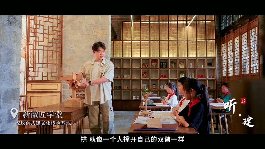 2023年初,建大与金寨县人民政府在南溪镇合作共建了“新徽匠学堂”,通过能工巧匠为大学生实地讲授传统建筑技艺、大学生为乡村儿童上“建筑课”的形式,推动传统建筑文化创造性转化与创新性发展,同时,也为金寨县乡村规划建设人才的在地培养提供了重要平台。