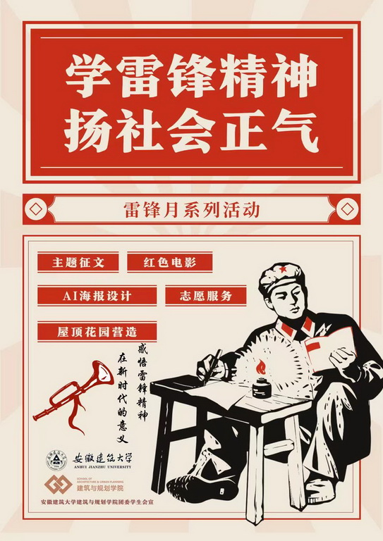 本网讯 “要把有限的生命,投入到无限的为人民服务之中去。”雷锋同志的话语穿越时空,激励着一代代青年赓续红色血脉。为深入学习雷锋事迹,深化学思践悟新时代雷锋精神,安徽建筑大学建筑与规划学院以第62个学雷锋纪念日为契机,精心策划并开展了“雷锋月”主题教育实践系列活动,以“五大板块”为载体,推动雷锋精神内化于心、外化于行。