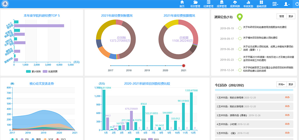 二是机制创新推进学校科研管理体制实现新突破。“十三五”期间,学校奋力推进科技创新体系和创新能力建设,全面提升科技创新治理能力。通过认真废除科研管理文件12项,新立、修订《安徽建筑大学财政科研项目及经费管理办法》、《安徽建筑大学科研平台建设与运行管理办法》(试行)等相关科研管理文件29项,2017年,学校上线科研管理信息系统,实现科研项目、科研成果、科研考核等科技管理工作的全流程信息化,为充分调动广大教师的科研工作积极性,挖掘科研潜力,提升科研水平提供了重要的技术手段和制度保障。