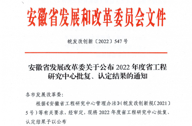 近日,安徽省发展和改革委员会下发了《安徽省发展改革委关于公布2022年度省工程研究中心批复、认定结果的通知》(皖发改创新〔2022〕547号),由我校牵头申报的“安徽省智能地下探测与环境岩土工程研究中心”获批,这标志着我校在智能地下探测与环境岩土方面的创新和研发有了更高的平台,将更有力促进相关学科和专业的发展。