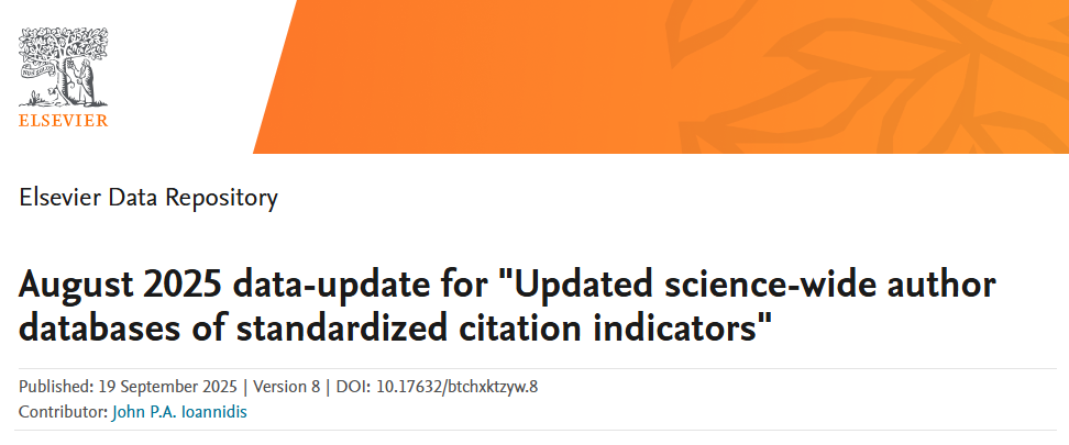 该榜单基于Scopus引用数据的系统分析,以被引数、h指数、hm指数等六种关键因素的指标进行打分,涵盖22个科学领域和174个子领域,遴选出全球前2%的顶尖科学家,该榜单客观、真实地反映科学家的影响力。