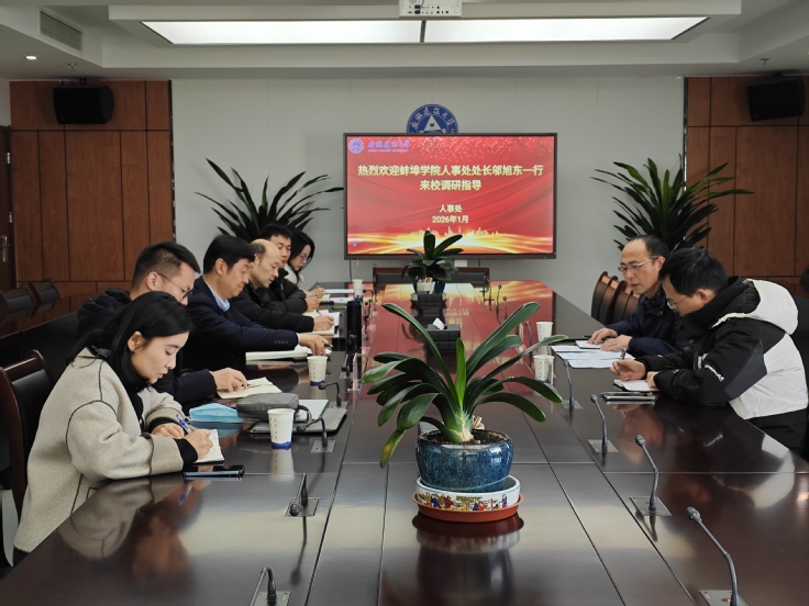 本网讯 1月9日,蚌埠学院人事处处长邬旭东一行来校调研交流,校党委教师工作部(人事处)相关负责人参加了调研座谈会。会议由党委教师工作部部长、人事处处长朱涛主持。