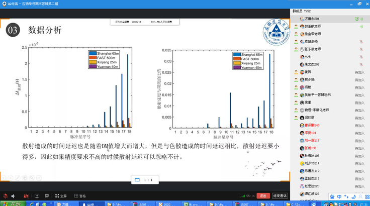 本网讯 数理学院应用物理系和统计系在第16教学周组织完成了2020年应用物理学、声学和统计学等专业毕业设计(论文)第一批次答辩工作。此次毕业设计(论文)答辩采用线上答辩方式进行,共有211名具有毕业设计(论文)答辩资格的拟毕业学生参加了此次答辩。