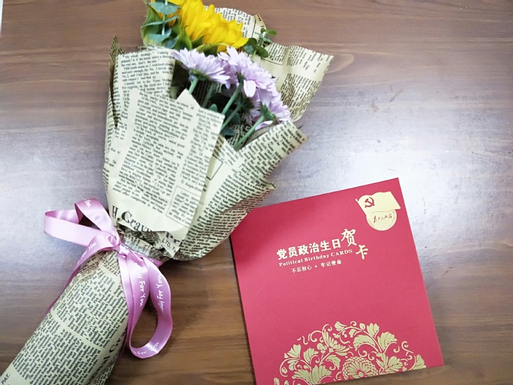 表彰活动结束,学院为入党时间在六月和七月的党员教师过“政治生日”。院党委书记余鸿宣读《过“政治生日”的党员名单》,学院为这些党员教师准备了贺卡和鲜花作为“生日”礼物。党员代表赵妮分享“生日”感悟,她回忆了自己作为教师的初心,表示会共同以争做四有教师为目标,砥砺前行,在为新时代中国特色社会主义教育事业的不懈奋斗中谱写人生新的华章。