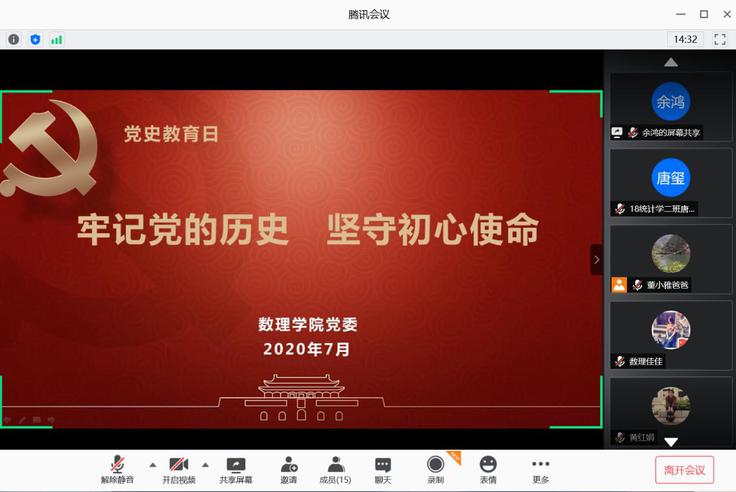 本网讯 7月15日,数理学院党委在线上开展“党史教育日”活动。