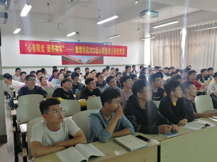 本网讯 为帮助新生更好地适应大学生活,以饱满的热情投入学习。10月12日,数理学院党委书记余鸿以“心有阳光,面带微笑”为主题为20级新生开展了一场别开生面的心理健康教育讲座。