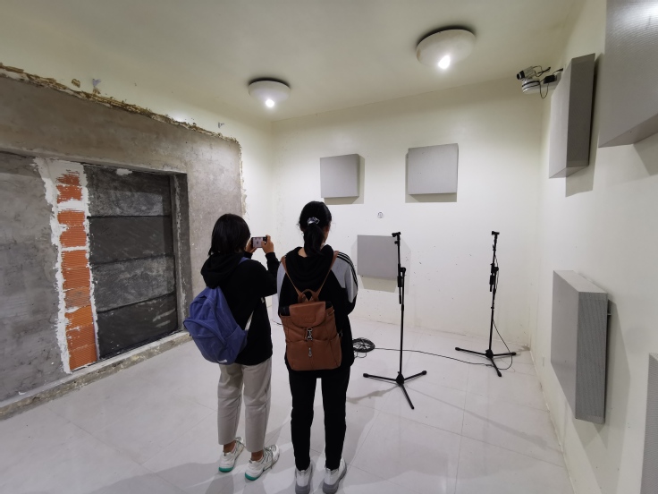 活动是数理学院针对大一新生开展启航教育的传统项目2020级新生在学生志愿者的引导下,先后了混响实验室,全半消声实验室,隔声实验室和声学体验室。全消声室,利用声学技术对室内做了全消声处理,室内人员必须大声讲话才可以让他人听见。混响室内声波反复叠加,回声不断,低声讲话也会产生较大的回响,声音不绝于耳。同学们且观且看,且感受且体验,亲身体验到了声学实验室的奇妙,感受到了专业的魅力。学生党员志愿者针对有关声学的基本知识声学消声实验室的基本构造等进行详细解说对同学们在参观过程中产生的疑问进行耐心细致的解答。