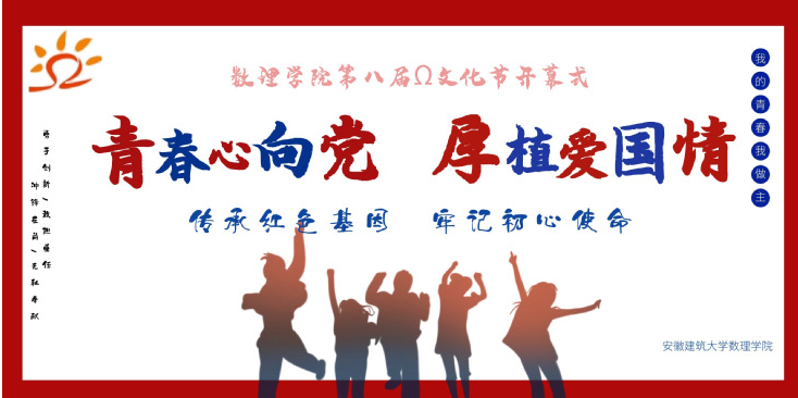 编者按:Ω,即Omega,中文音译为欧米伽,在数理化中都代表不同含义,充分体现数理特色,蕴含数理魅力。“Ω”文化节作为数理学院传统特色活动,活动周期持续一学年,学院从启动“Ω”文化节系列活动,已走过了个春秋。年的不断探索,年的不断创新,见证了数理学子一直以来积极向上的青春风貌。今年的文化节因为中国共产党建党100周年显得意义非凡,以“爱国力行践初心,青春有为显担当”作为主题,旨在鼓励青年勇担时代重任,自觉践行社会主义核心价值观,努力在实现中国梦的伟大实践中创造精彩人生。