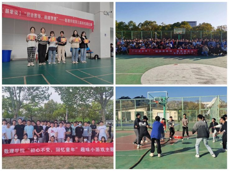 以竞技实践为主线,通过开展各类体育比赛,“团结奋进 绽放青春”趣味运动会、“健康乐跑、越无止境”乐跑打卡活动、“羽动赛场,超越梦想”第三届羽毛球比赛、“初心不变,回忆童年”趣味活动、“乒”出精彩,“创”赢未来 乒乓球比赛、第一届“小欧杯”篮球赛等活动强健学生体魄、增强了数理学院的凝聚力。培养学生对体育锻炼的浓厚兴趣,丰富课余生活