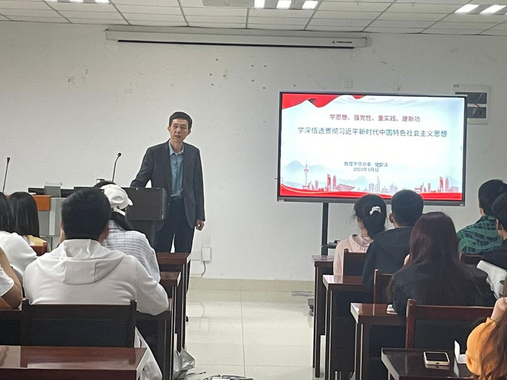 学院党委组织员徐华洋担任第三课主讲人,徐华洋以“学思想,强党性,重实践,践新功”为主题,分为中国共产党历次全国代表大会、中国共产党的精神之源及学思践悟党的二十大精神三个部分,希望用党的初心使命感召青年,用党的光辉旗帜指引青年,用党的优良作风塑造青年,引导他们成为有志气、有骨气、有底气,担当民族复兴大任的时代新人。