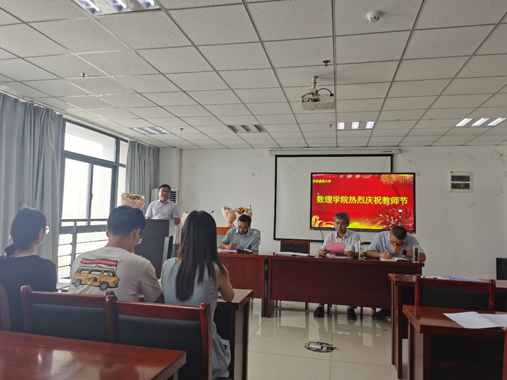 在第39个教师节即将到来之际,9月6日下午,数理学院在实验综合楼1306会议室召开简洁而隆重的庆祝活动。学院全体教师和部分荣退教师参加了此次活动。
