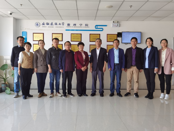 戈慈水首先对时术华一行到访表示热烈欢迎,并介绍了安徽建大数理学院的办学情况。时术华说明此行来意和调研内容,并对安徽建大数理学院的接待表示感谢。赵庆利介绍了山东建大理学院的基本情况,余江应就山东建大理学院的调研主题“新一轮教育教学评估工作”做了详细的介绍。