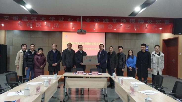 会后,举行了“安徽建筑大学大学生创新创业孵化基地”授牌仪式。双方约定携手推进校企合作,拓宽合作范围。针对园区企业特点和发展需求,校方邀请园区企业组团来校招聘,选拔优秀人才,共同开拓校企就业创业合作新篇章。