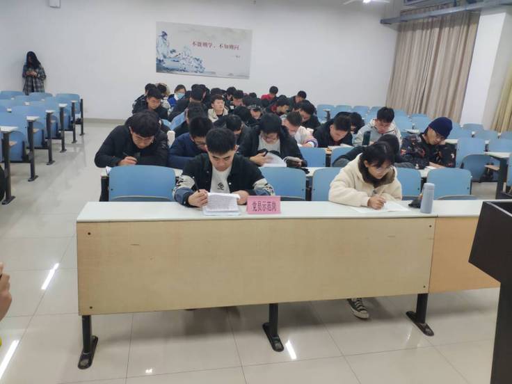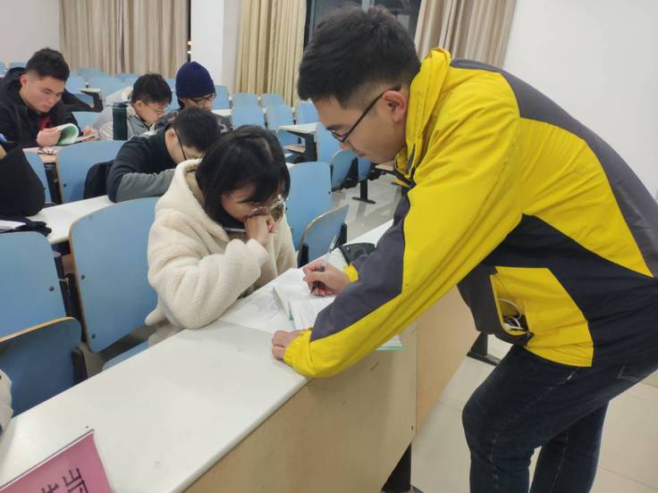 本网讯 12月份,数理学院党员示范岗走进自习室。纪珺洁、朱明玉、吴梦洁、胡成武等优秀党员代表到20级晚自习教室,与新生进行学业交流,帮助新生答疑解惑。本次党员帮扶小组由学生党员自主报名,竞聘上岗,并且通过学院老师筛选、考核,最终确定优秀示范岗位帮扶小组成员。