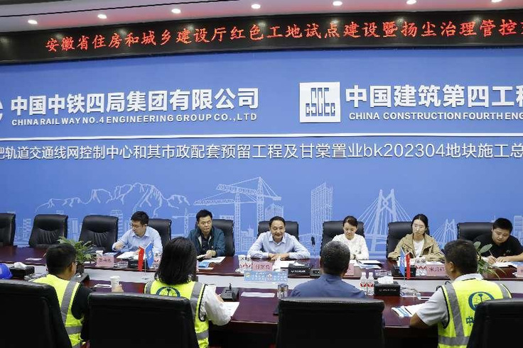 本网讯 2024年10月17日下午,安徽省住房和城乡建设厅工程质量安全监管处二级调研员张晓燕、三级调研员付芝兵、四级调研员蔡勇,安徽建筑大学土木学院安全工程系教师秦荣水等一行6人,赴中铁四局合肥轨道交通线网控制中心及甘棠置业项目,开展以“红色工地赋能建筑施工高质量发展”为主题的党日活动。这次活动旨在深入落实党建与项目建设相融合的理念,通过实地调研和经验交流,促进红色工地建设的进一步完善,赋能建筑施工高质量发展,同时推动扬尘治理工作的高效落实。
