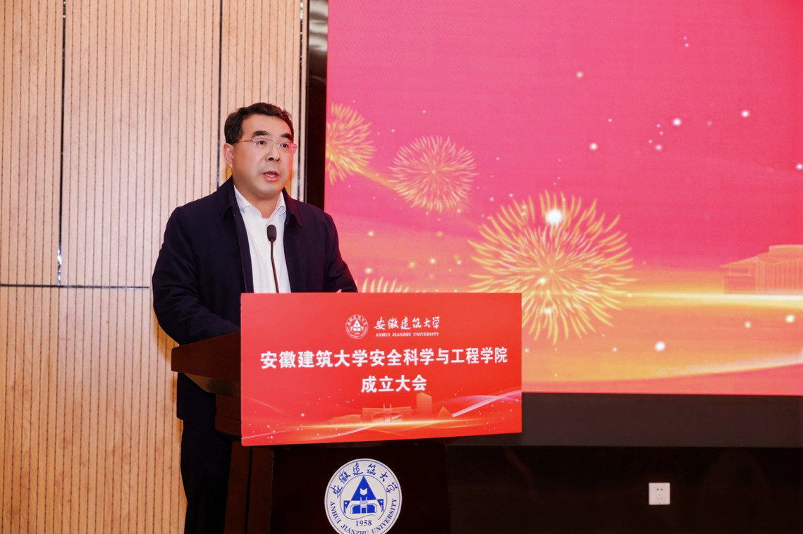周福宝致辞表示热烈祝贺。他指出,在新一轮科技革命与产业变革深入推进的背景下,安全科学与工程学院的成立具有重要意义。中国安全生产科学研究院与安徽建筑大学使命相通、优势互补,希望双方加强合作,共同探索产学研用深度融合的新机制与新路径,协力破解安全领域重大科技难题。