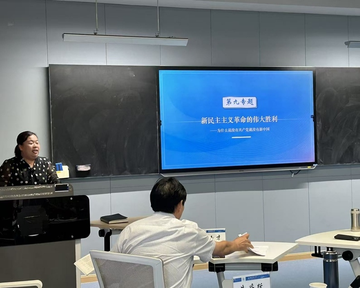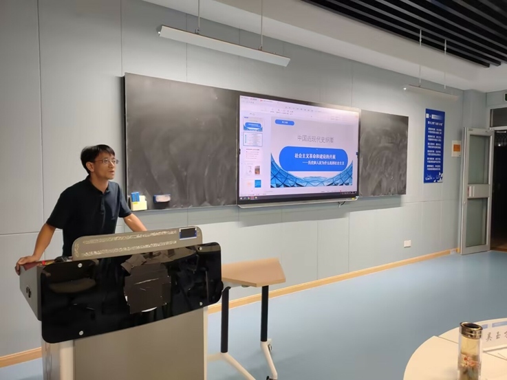 本网讯 9月13日,安徽省高校思政课“纲要”分教指委主办,我校马克思主义学院承办的第四届全国高校思政课教学展示活动“纲要”课省级集训磨课第三次活动,在安徽建筑大学紫云路校区徽学楼(主楼)1602教室开展。本次磨课活动邀请了上海市高校“纲要”分教指委委员徐光寿、第三届全国高校思政课教学展示活动“纲要”特等奖获得者李丹、安徽省“纲要”分教指委主任委员吴玉才等6位专家,对代表安徽省参赛的4个教师团队进行现场指导。学院领导班子成员、青年教师参会。