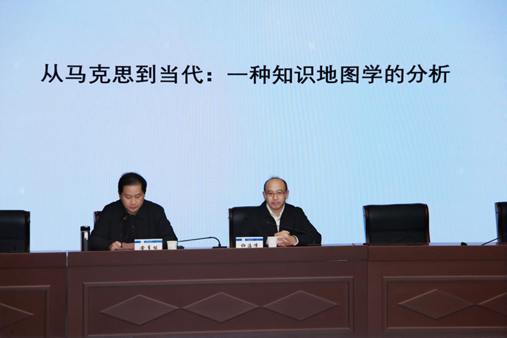 黄多能在致辞中热情欢迎仰海峰教授的到来,并指出:马克思主义思想既是审视世界的理论高地,也是指引人类探索理想社会的行动蓝图。进入21世纪,世界格局深刻变革,如何在当代复杂语境下解读和拓展马克思主义的思想地图,以经典理论坐标穿越知识迷雾,已成为新时期理论研究者的重要课题。而仰海峰教授的报告正为解答这些问题提供了宝贵的思想启迪。