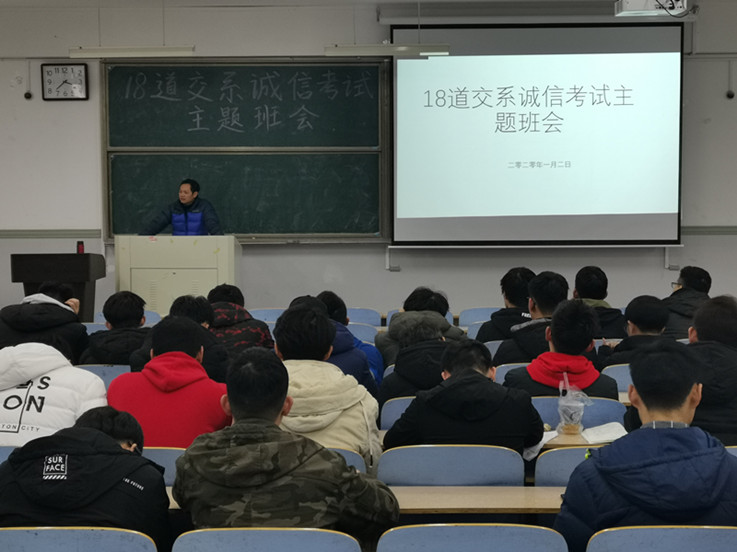 本网讯 1月2日下午,2018级道路桥梁与渡河工程专业、交通工程专业在东辅楼2201教室开展了“诚信考试”主题班会。