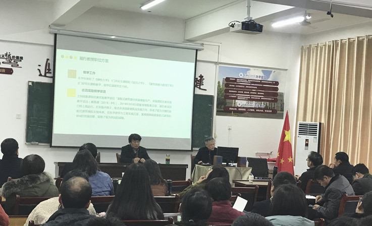 会上,丁克伟作为学院任教教授率先述职,他结合PPT立德树人、教育教学改革、科研成果与社会服务、青年教师培养、学生培养等方面做了详细报告。其他教授也依次对各自一年来的工作向全体教师作了汇报。
