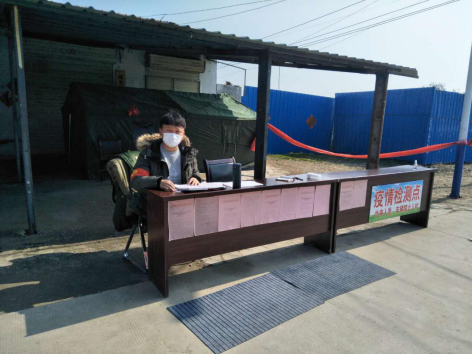 山东滨州 18级测绘工程专业的赵旭负责在小区门卫卡口执勤,认真对来往车辆以及人员进行登记,并对出入人员进行体温测量,劝返陌生人员进入。通过张贴信息布告等方式来宣传应对疫情的方法和预防新型冠状病毒的常识。