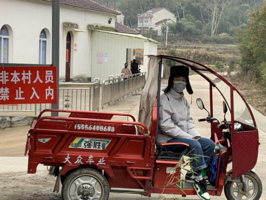 浙江杭州 每天早上八点到下午四点半在村口的卡点的志愿服务区都能看到17级城市地下空间工程专业二班方聪的身影。他主要负责对来往车辆进行记录,提醒过往村民戴口罩,测量体温,同时严格限制外来人员进入村庄,对拜年串门的人员进行坚决劝返。