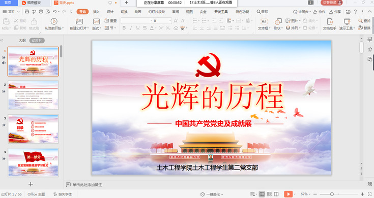 本网讯 为贯彻落实习近平总书记重要指示精神,持续加强党史、新中国史学习教育,按照学校组织部的工作安排部署,土木工程学院学生第二党支部在线上开展了微党课暨主题为“牢记党的历史、坚守初心使命、决胜全面小康”为主题的党史学习教育和组织生活会。支部书记范瑾进行了题为“光辉的历程”党课宣讲并主持了组织生活会,支部全体党员参加了本次学习会议。