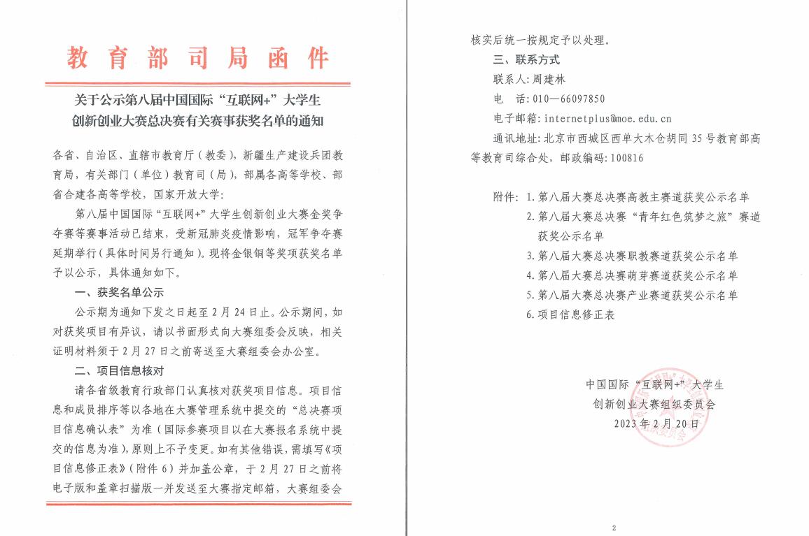 新闻链接:中国国际“互联网+”大学生创新创业大赛由李克强总理于2015年亲自提议举办,教育部、中央统战部等十多个部委和地方省级人民政府共同主办的重大赛事。历经八年深耕,该大赛已成为中国创新创业教育的品牌、世界双创赛事的品牌、科教深度融合的品牌,是评价“双一流”和高水平大学建设的重要指标,也是评价一所学校创新创业水平的重要赛事。本届大赛共有来自111个国家和地区、4554所院校的340万个项目、1450万余人次报名参赛,参赛人数首次突破千万,成为“百国千校千万人”的全球青年双创大舞台。 |