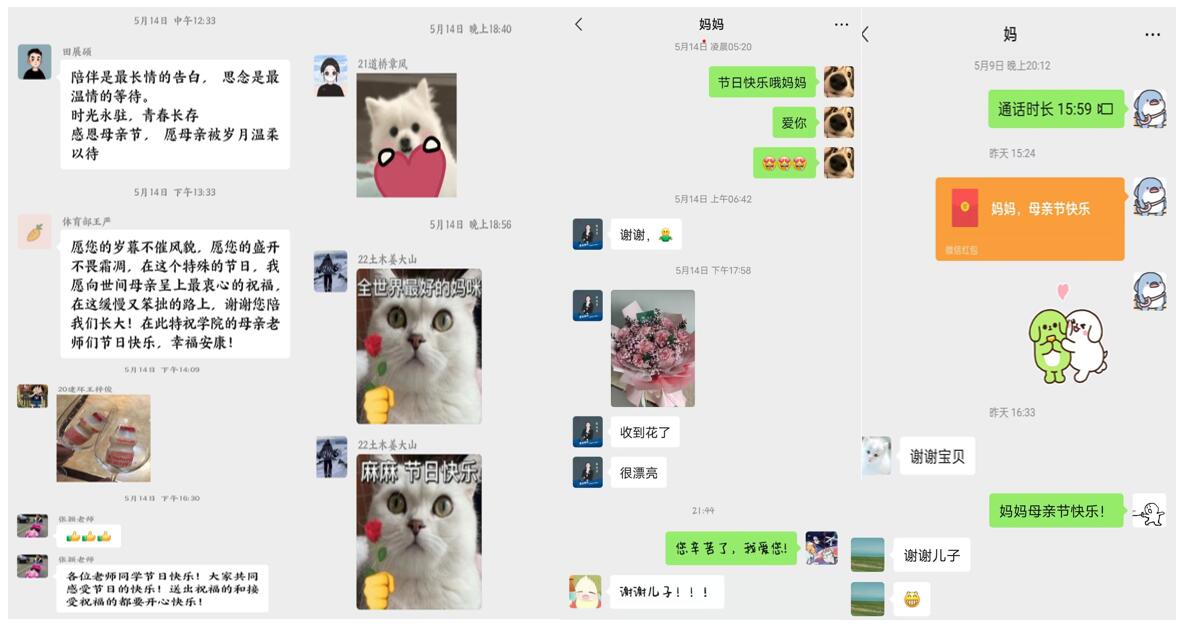 本网讯 为弘扬中华民族传统美德,营造感恩母爱、关爱母亲、回报母亲的良好氛围,土木学院于近日举办“情暖五月天 感恩母亲节”主题教育活动。 感恩有你 贺卡传情 活动中,同学们最真诚的语言、最温情的画笔表达对母亲的感恩及祝福,并纷纷晒出自己制作的“感恩母亲”贺卡。有的同学画出了成长过程中母亲对自己无私的爱与照顾;有的同学写下与母亲在一起的温暖瞬间;有的同学剪贴出一朵康乃馨祝福母亲永远年轻、健康。奚雨欣同学说:“母亲的碎碎念念,温暖了我的岁岁年年。”涂瑞超同学说:“爱没有方向,妈妈就是我的导航!”胡巧巧同学说:“愿母亲的岁暮不催风貌,愿母亲的盛开不畏霜凋。祝所有母亲节日快乐,幸福安康!”最后,大家将贺卡以视频和快递的方式送给母亲。 致敬母爱 祝福暖心 活动中,同学们通过微信、短信等方式给自己的母亲发送祝福,表达对母亲的感激和爱,并将截图发在班级群里,与同学们分享。同时,同学们还在群里祝福土木学院所有已为人母的老师们节日快乐,感谢她们在学习和生活中给予的帮助和关怀,她们是学生们的另一个“母亲”,另一个姐姐! 同学们在活动过程中重温与母亲的点滴故事,感恩母亲的伟大与付出。相信同学们会常怀感恩之心,将对母亲的爱与感激化为成长的动力。(图/文:王月竹、张颖;审核:王媛) |