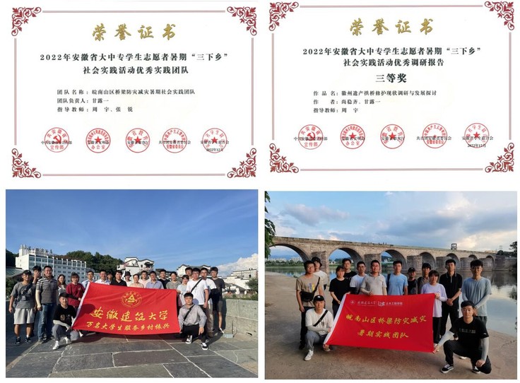 除此之外,2023年学院暑期实践团队首次获得2022年度安徽省暑期“三下乡”社会实践活动优秀实践团队、优秀调研论文等荣誉称号。 再夺! 时隔九年,土木青年再次获得第十六届全国大学生结构设计竞赛一等奖。赛事高度契合工程实际,聚焦创新工程教育,瞄准工程行业前沿,充分考查学生的理论知识储备、空间受力分析能力、创新能力和工程实践能力,对培养拔尖创新人才起到了积极示范作用。