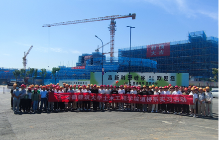 本网讯  为积极响应人才培养目标的基本要求,加强学生对专业领域的认识,529日上午,土木工程学院2024届道路桥梁与渡河工程专业和交通工程专业全体学生赴合肥市高新区讯飞小镇两个建筑工地开展了毕业实习活动。土木工程学院道桥系系主任石贤增、副主任周宇带领全系10位老师全程参与了实习过程指导。