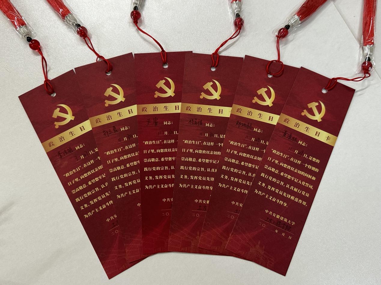 过一次“生日” 支部书记为每一位毕业生党员赠送一张政治生日贺卡和毕业生党员组织关系转接温馨提示卡,重温重要时刻,为毕业生党员道一声祝贺、送一份温馨提示。希望毕业生党员们要时刻牢记入党时的铮铮誓言,牢记入党的初心,自觉保持先进性,发挥先锋模范作用。无论身处何地,都要秉持“为人民服务”的信仰,始终保持艰苦奋斗的昂扬精神。