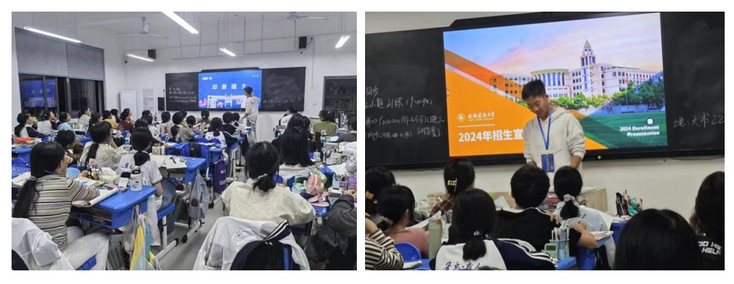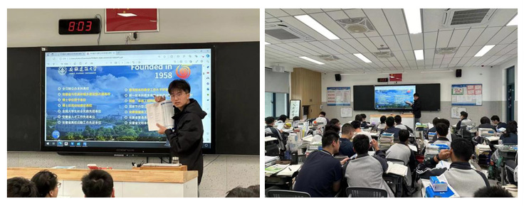 10月3日晚,2024级土木工程专业戚鑫磊在安徽省颍上第一中学高三6班进行了招生宣讲。戚鑫磊以诙谐幽默的语言和丰富的资料及视频向同学们展示了安徽建筑大学的学科专业特色、师资队伍实力、优良学风传统、就业发展保障、校园生活亮点以及地理位置优势等方面的情况,着重介绍了大学丰富多彩的校园生活,包括各种社团活动、文艺晚会等,学弟学妹们对此表现出浓厚的兴趣。戚鑫磊还通过分享自己这半年中在大学的进步和变化来激励同学们追求更高的学业目标,勇于挑战自我。 宣讲母校:江苏省六合高级中学