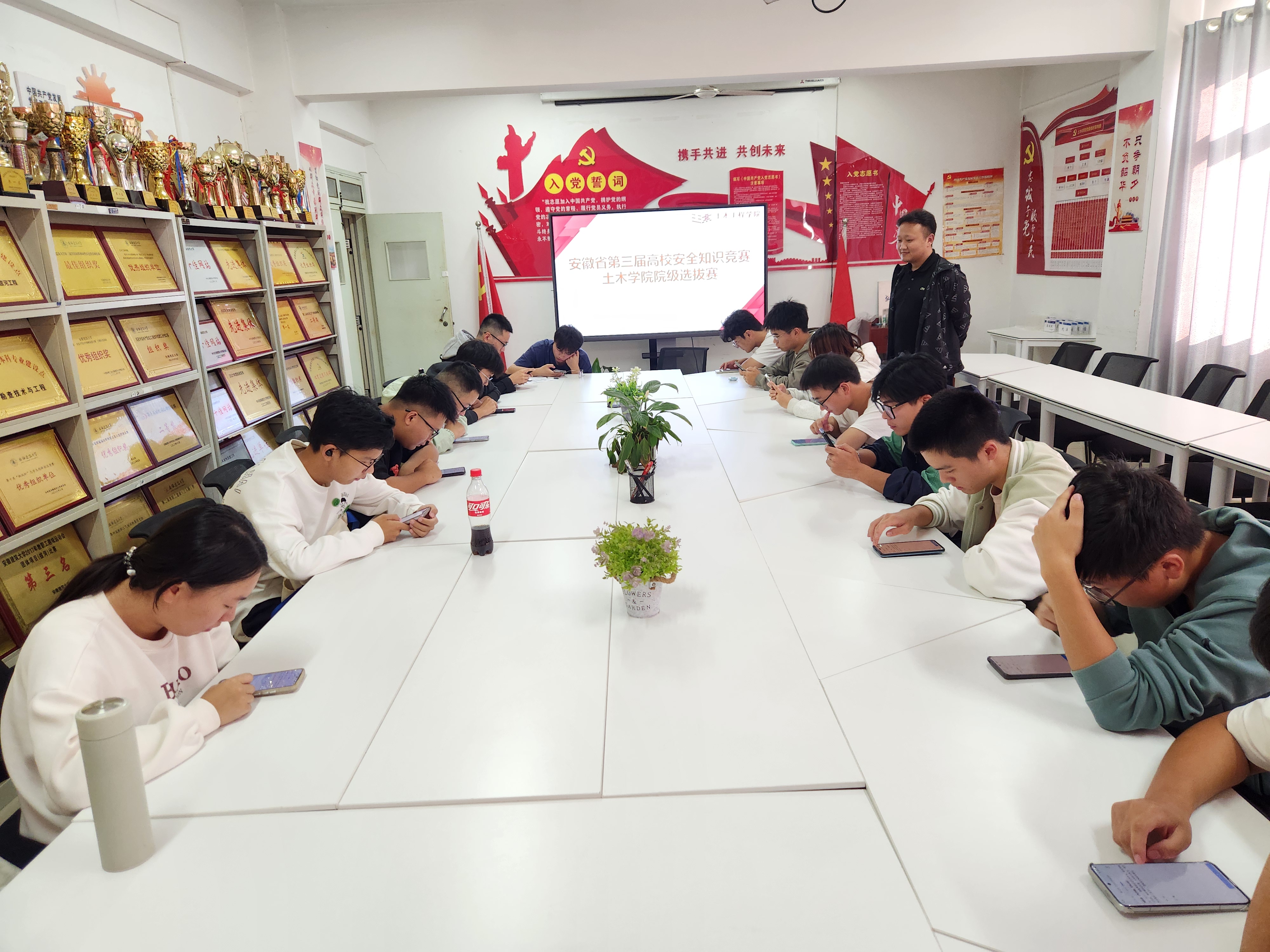 本网讯 为进一步增强学生的安全意识,普及安全知识,给土木师生营造一个更加安全的学习和生活环境。10月8日,土木工程学院成功举办了一场别开生面的安全知识竞赛暨安徽省第三届高校安全知识竞赛土木工程学院院级选拔赛,来自各专业20余名同学参加了此次比赛。