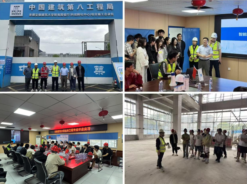 本网讯 5月8日,土木工程学院2025届土木工程专业180余名学生分批赴母校安徽建筑大学新南园餐厅(科技孵化中心)建筑工地开展了毕业实习活动。土木工程学院副院长施国栋以及建工系唐礼平、魏建鹏、秦佳俊等指导老师全程参与实习过程。