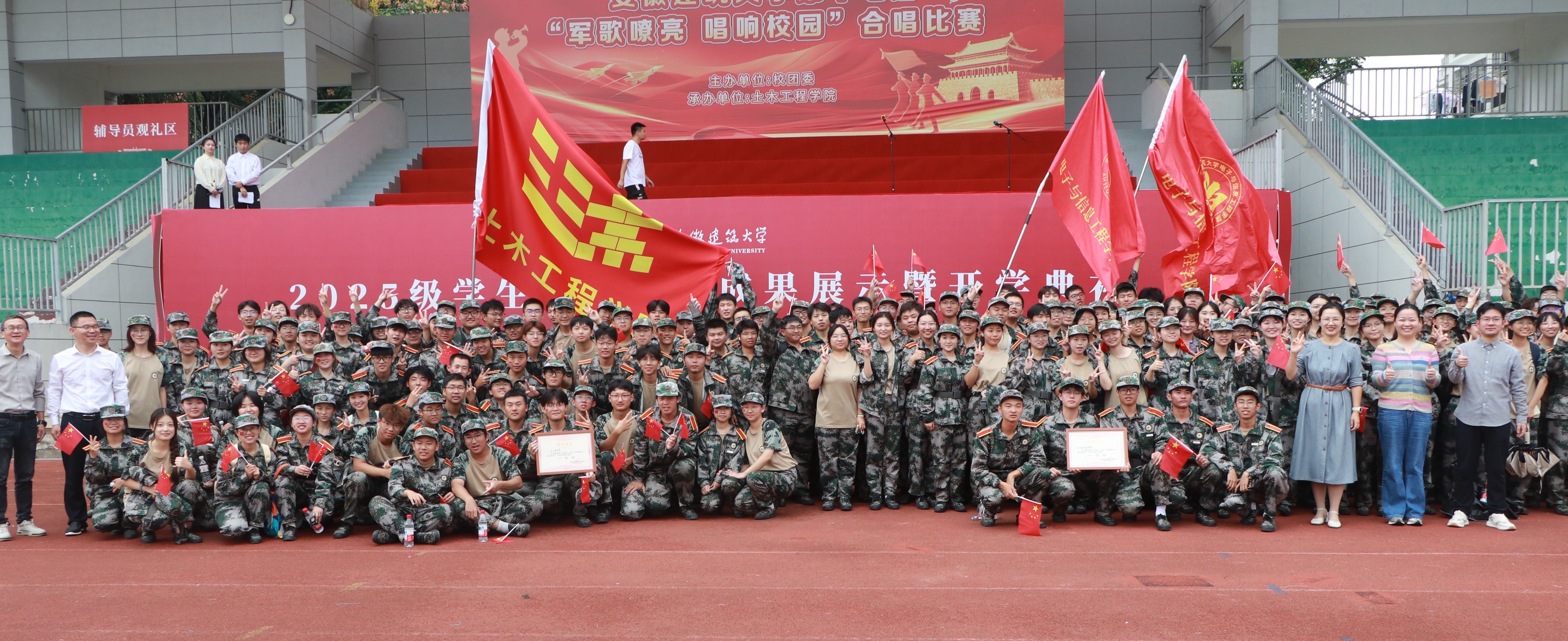 本网讯 秋风飒爽,军歌嘹亮。为进一步强化学生爱国主义精神与国防观念,传承红色基因,近日,由校团委主办,土木工程学院承办的安徽建筑大学第十七届“军歌嘹亮 唱响校园”军歌大赛在紫云路校区顺利举行。这既是一场军事风采与艺术魅力的双重盛宴,更是建大学子以青春之名,向英雄、向军营献上的深情礼赞。