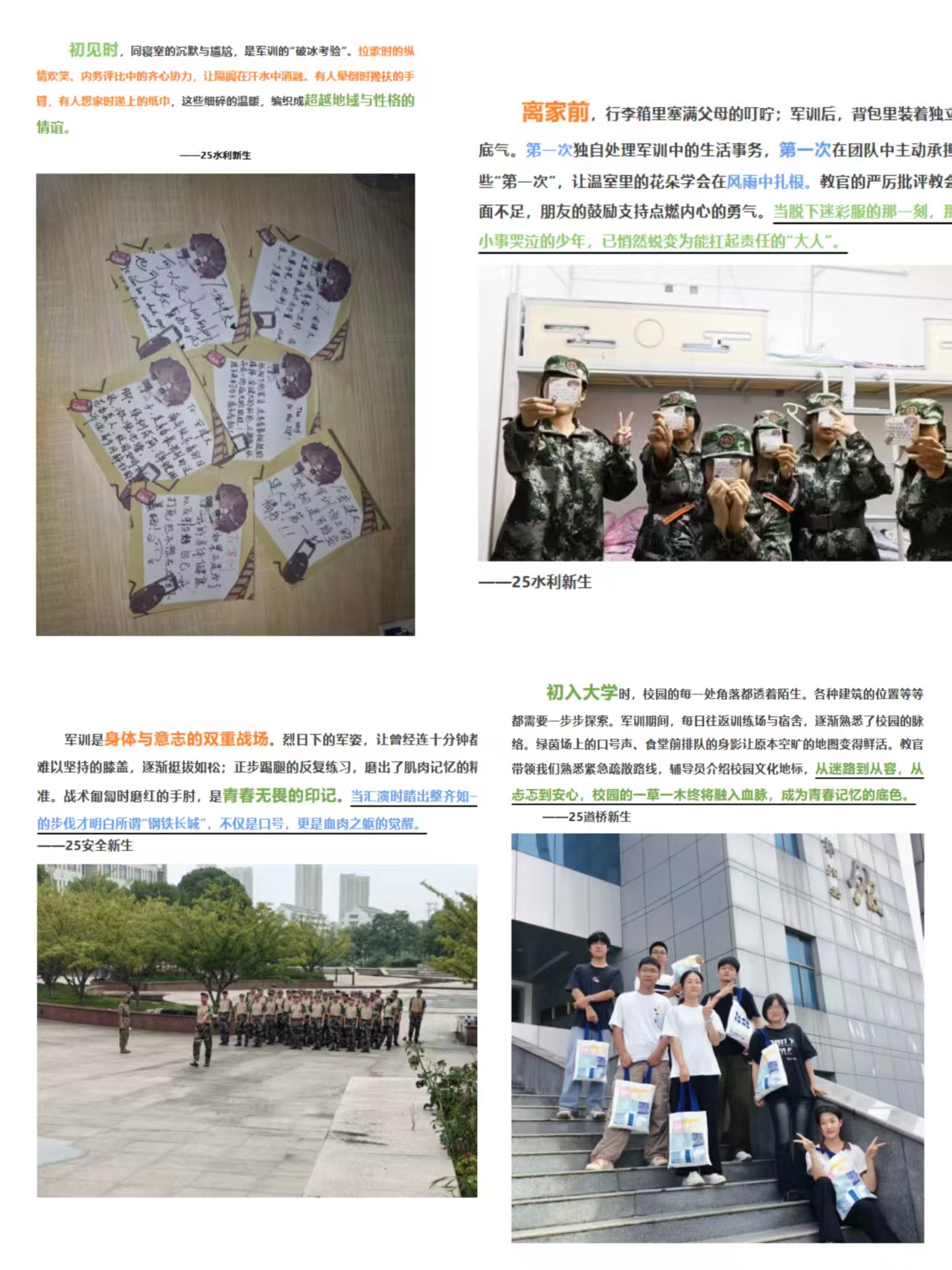 本网讯 近日,土木学院 “易” 展迷彩志・青春启新程 ——2025 新生军训风采与校园生活感悟评选展示活动在校园内圆满落幕。活动以线上征集展示的形式开展,旨在全方位展现新生在军训中的飒爽英姿与步入大学校园后的成长感悟,进一步凝聚青春力量,激发学子们的集体荣誉感与奋进意识。