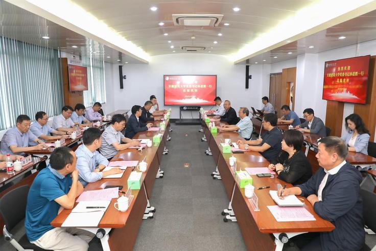 本网讯 9月21日,校党委书记孙道胜,校党委常委、副校长闵杰带队赴南京信息工程大学调研交流,与南京信息工程大学党委书记管兆勇,校党委常委、总会计师胡明保等就深化两校合作共建举行座谈交流,并赴天长金牛湖产教融合园区看望联培拔尖班学生。