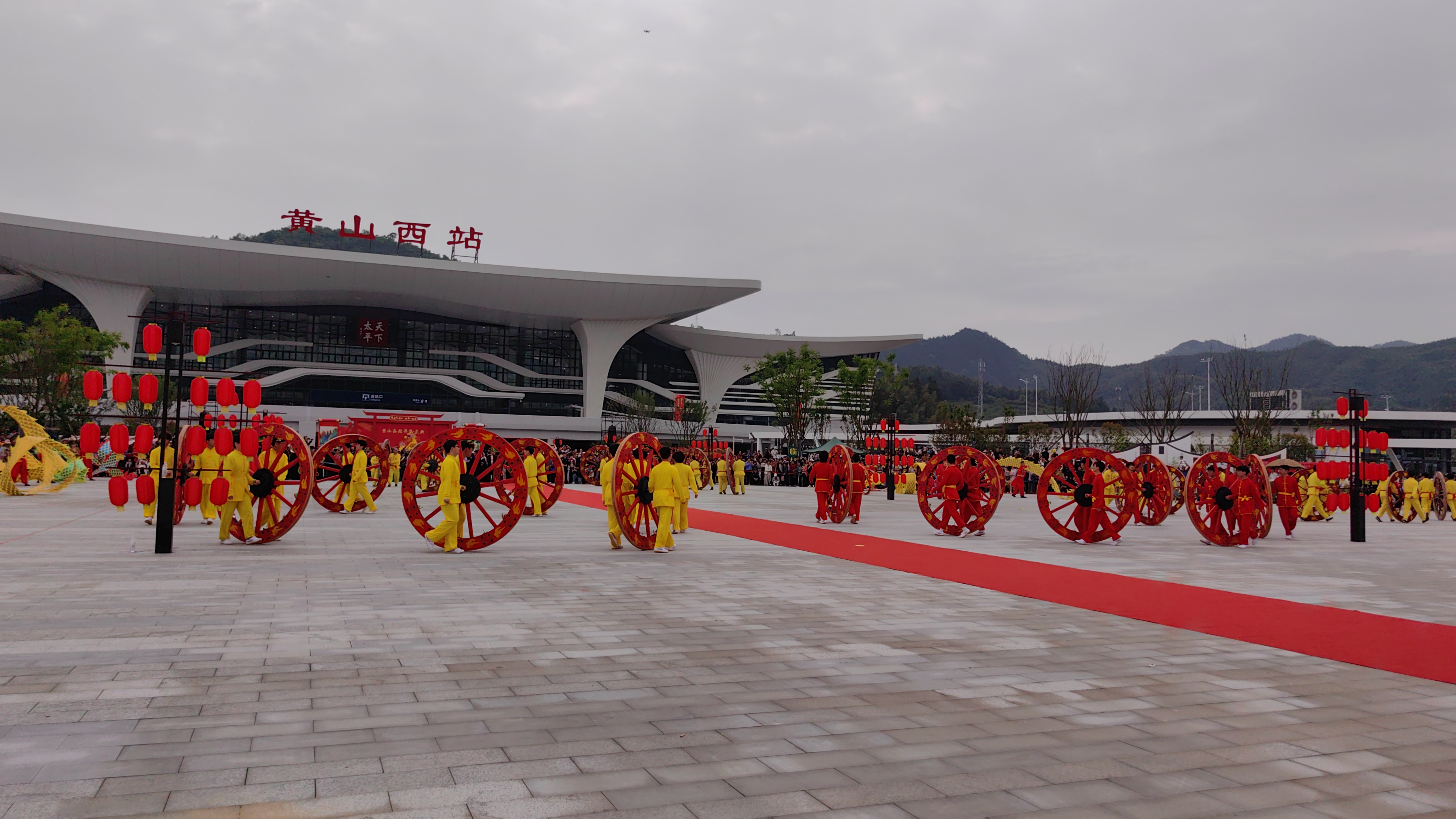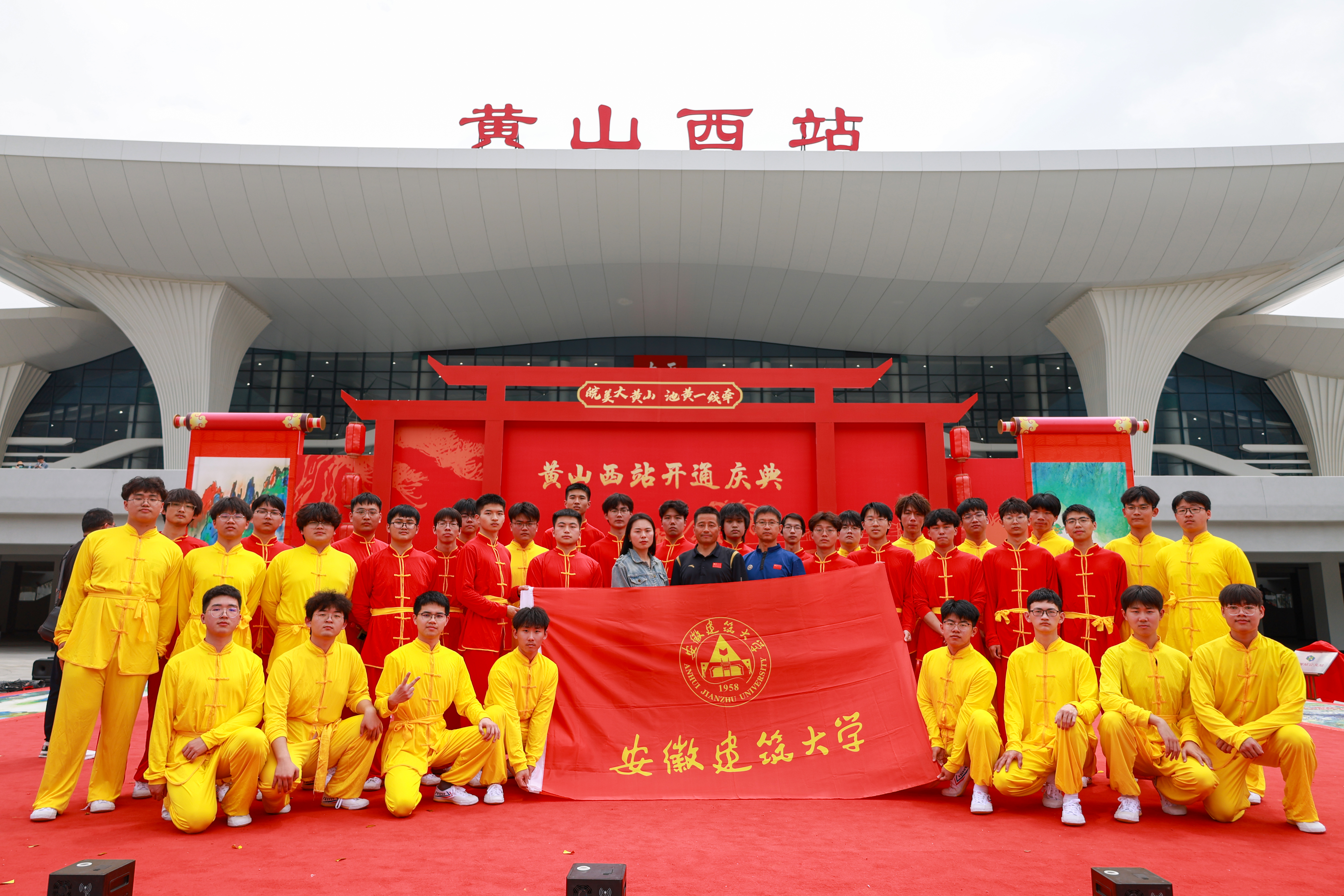 本网讯 4月26日,黄山西站高铁正式通车,在通车庆典上,安徽建筑大学作为特邀嘉宾参与轩辕百车会演出。