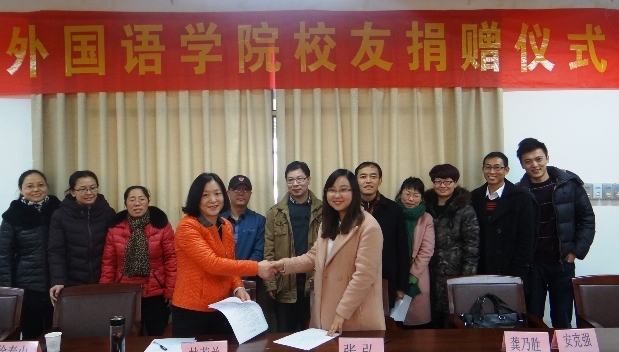 本网讯 11月25日,外国语学院校友捐赠仪式在南区主楼七楼校会议室举行。由学院历届校友发起成立的建英发展基金会代表、院领导、教师和学生代表出席,仪式由院党总支书记龚乃胜主持。