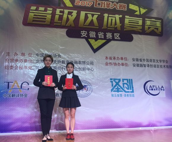 本次复赛共有88位来自全省各高校的优秀学子参加。安建大两位代表稳定发挥,展现了稔熟的汉英交传能力和扎实的英文基本功底,最终联袂进入30人组成的决赛,并取得奖项。其中,张蓉蓉同学由大赛评审组推荐,将作为安徽省代表,参加5月在南京举行的全国口译大赛大区赛事。(作者:王晓蕾;审稿:林莉兰)