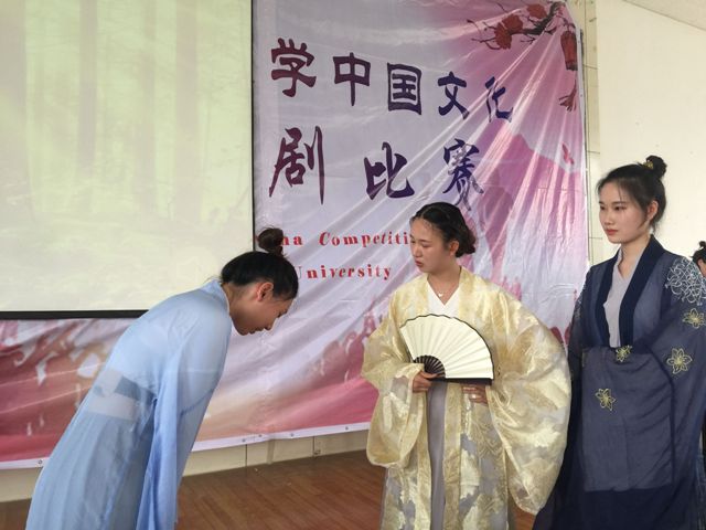 本网讯 5月16日,安徽建筑大学第二届中英文化节在南校区主楼1411教室开幕。在首先举行的中国文化英语话剧大赛中,全校各学院学生展示了一幕幕自编自演的精彩话剧,技艺娴熟,立意雅正,以英语载体将中国传统文化精髓巧妙弘扬,展现了我校学生丰富的文化素养和扎实的英语综合应用能力。剧目《邹忌讽齐王纳谏》诵扬了古人礼贤下士,广开谏言的可贵品质,作品《花木兰》又将中国女性勇敢、坚毅的优秀品质浓缩在咫尺舞台。学子们表演亦庄亦谐,令人动容,吸引了众多观众。