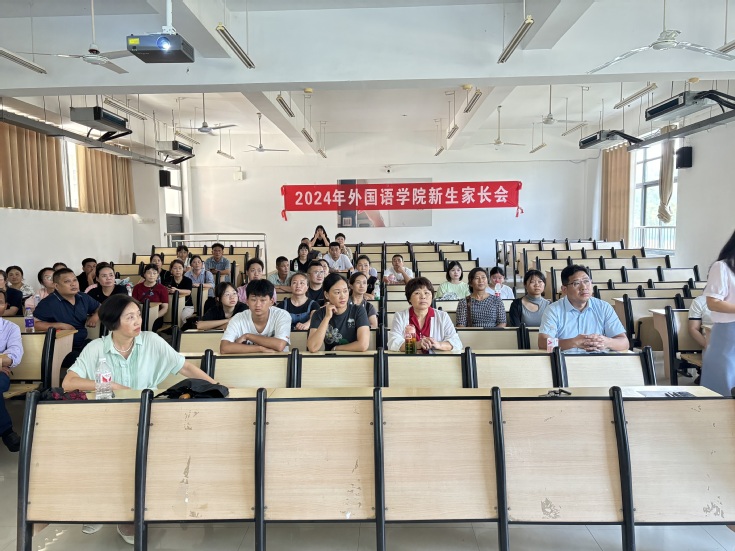 本网讯 山河日月作贺礼,往来又是读书人。为进一步加强学院与新生家长之间的密切联系,搭建良好的沟通桥梁,9月5日下午,外国语学院在逸夫楼举办了2024级新生家长会。党总支书记余鸿、学院院长徐春山一行参加了会议,会议由新生辅导员虞佳丽主持。