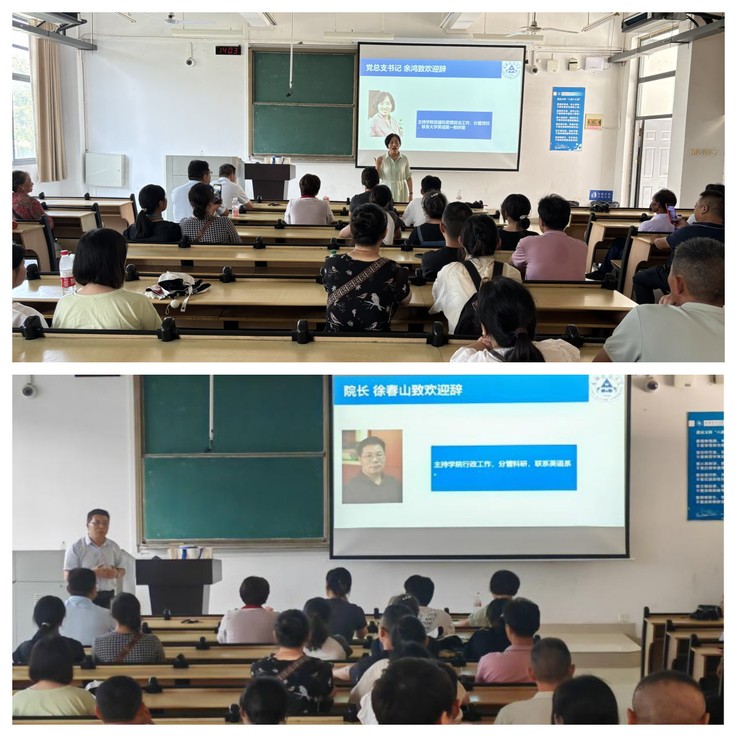 会上,余鸿与徐春山首先代表学院向各位新生家长的到来发表了热情洋溢的欢迎辞,向家长们介绍了学校的发展历程、教育理念以及未来的规划。其次,站在家长的角度,强调了家校合作的重要性,并承诺学校将致力于为学生提供一个全面发展的平台;最后,向家长们介绍学生的日常学习和生活环境。家长们对学院的现代化设施和优美的校园环境给予了高度评价。