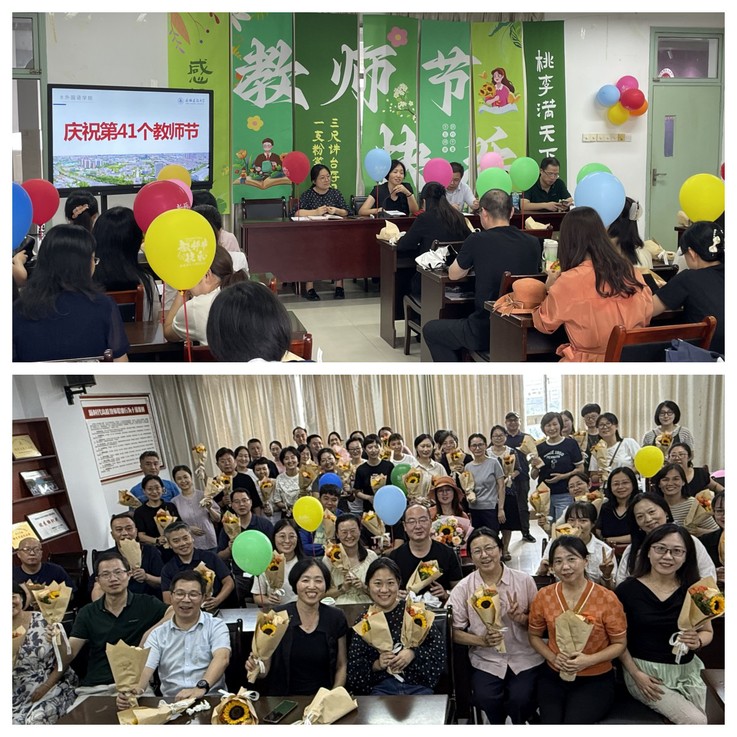 本网讯 9月10日下午,外国语学院在徽学楼1712会议室召开庆祝第41个教师节大会,会议由学院党总支书记余鸿主持。全体教职工齐聚一堂,共话教育初心,共绘发展蓝图。