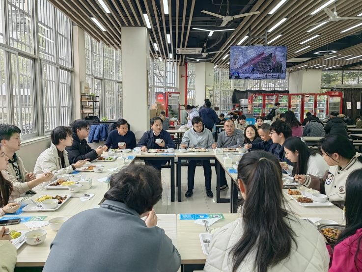 虽是冷冬时节,但正午的阳光带来了阵阵暖意,紫云餐厅里更是热气腾腾、暖意融融,黄多能一行与材化学院、外国语学院师生同坐一桌、共进午餐,亲切询问同学们对就餐环境、饭菜价格、菜品种类及服务质量的意见建议。餐桌之上,同学们彻底打开了话匣子,分享了自己在日常学习与生活中的小困惑、小失落、小进步、小成长。看着一张张洋溢着青春气息的脸庞,黄多能耐心叮嘱到:健康的体魄是求学问道、逐梦前行的根基,要养成良好的饮食卫生习惯,加强锻炼,在汗水中锤炼坚韧意志,提升身体免疫力,以饱满的精神状态迎接每日的学习与挑战。
