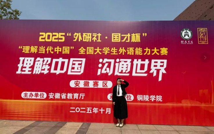 本网讯 近日,2025“外研社·国才杯”“理解当代中国”全国大学生外语能力大赛全国总决赛在北京圆满落幕。安徽建筑大学外国语学院朱高绮同学在英语组赛项中脱颖而出,获全国铜奖。