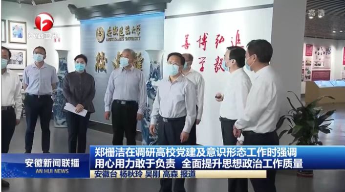 安徽建筑大学是一所以土建类学科专业为特色的多科性大学。郑栅洁来到校史馆,结合展板、图片和展品,听取学校总体情况以及党建、意识形态等工作情况介绍。“有什么突出问题?”“有没有风险隐患?”“学生关切有哪些?”郑栅洁不时询问,他指出,高校处在意识形态工作的前沿阵地,要全面掌握学生的思想动态,及时发现和解决苗头性、倾向性问题,牢牢把握工作主导权。听说学校发挥专业特长、积极融入新型城镇化建设,郑栅洁要求把学校建设与地方发展结合起来,聚焦群众所需所盼,在智慧城市、装配式建筑、先进建筑材料以及乡村振兴等方面发挥更大作用,不断增强服务经济社会发展能力。